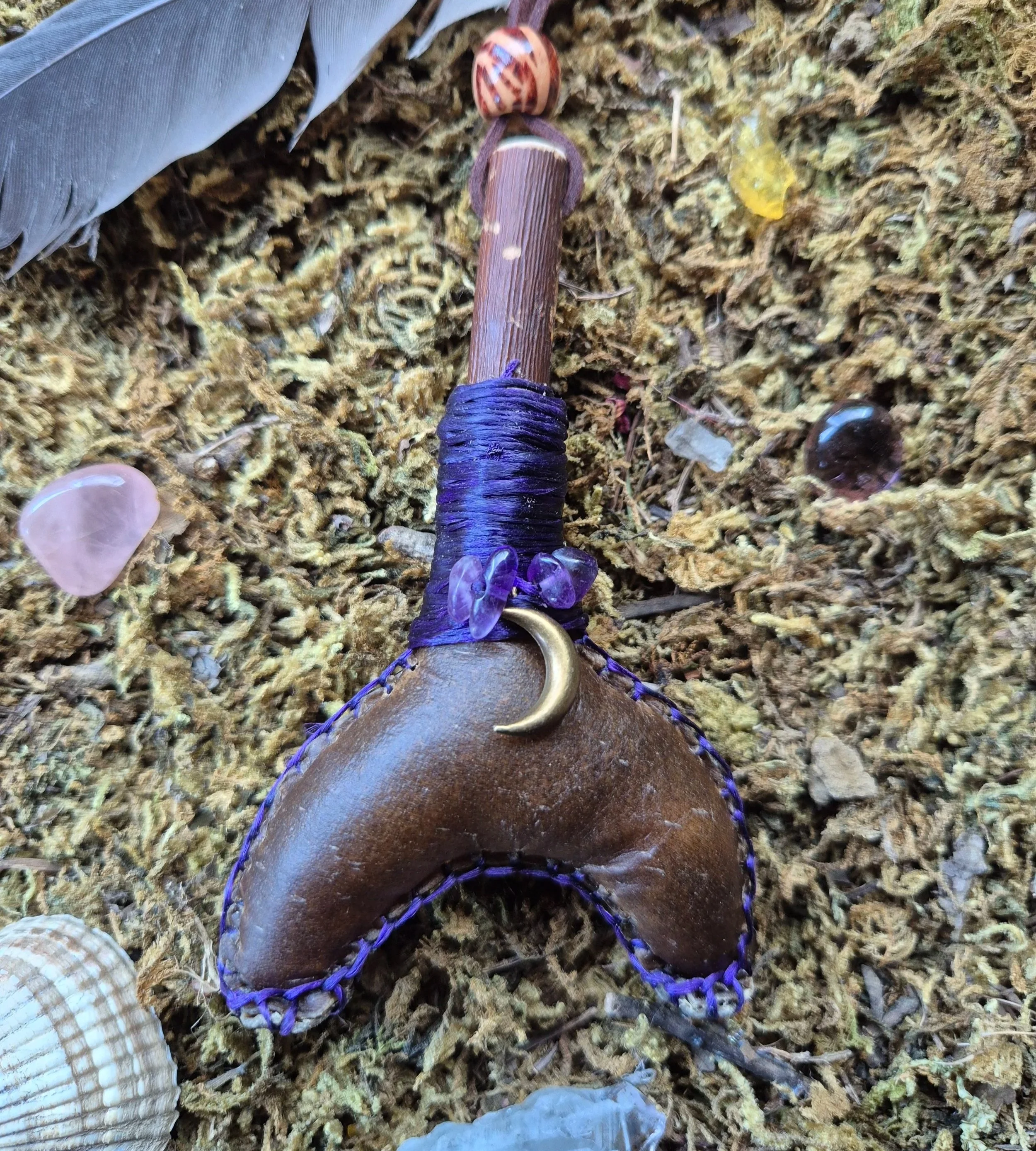 I have been making magical tools for 7 years after a storm brought a load of wood down around a former home and having spent the previous year collecting crystals and making grids, although I feel I have done similar things my entire life and probably previous ones. I add crystals to strong fallen wood & other found things like hazel nut shells and bones. I work with my intuition and natural instincts to reveal and uncover the magic that lies within the amazing pieces I find, if I have a vision already I usually find a suitable piece, sometimes it seems like they find me.
