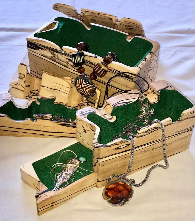 In November 1996, during a stop-over in New York, Ray found a craft shop in New York called the Great American Woodworker. He popped into the store as a semi-professional woodturner (and retired teacher) but left many hours later, having become fascinated by a range of very unusual wooden boxes. Ray had an Epiphany in that shop on 7th Avenue and became Ray the Box Man on the Craft show circuit in England and Scotland.