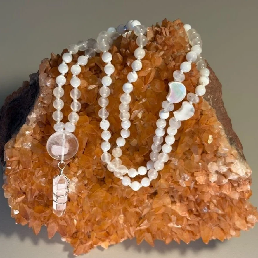 My lifelong love for stones began with childhood days spent collecting pebbles & shells on the beach, marvelling at the tiny crystal caves and fossils hidden within. This early fascination laid the foundation for a passion that continues to grow. I specialise in designing and handcrafting Mala Beads—traditional meditation accessories— as well as other crystal jewellery (necklaces and bracelets) that blend mindfulness, individuality, and natural beauty.