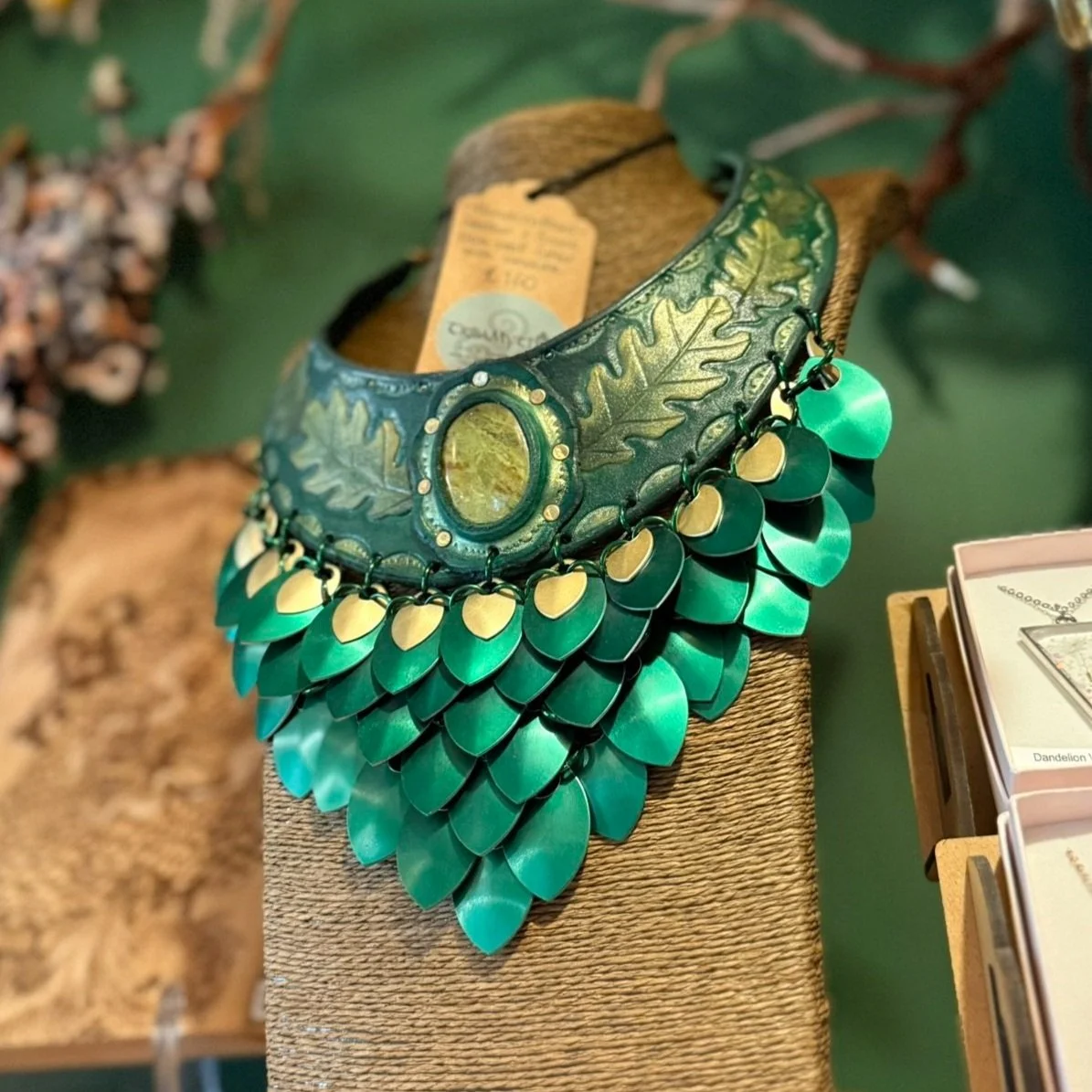 What began as a hobby evolved into a full-time business, bringing an ever evolving range of imaginative and skilfully hand made leather creations, costume pieces and artwork inspired by nature, myth, magic and fantasy. Residing just outside of beautiful Glastonbury, they work from their home studio nestled at the bottom of the garden, crafting creations for local shops, alternative market events, and online.